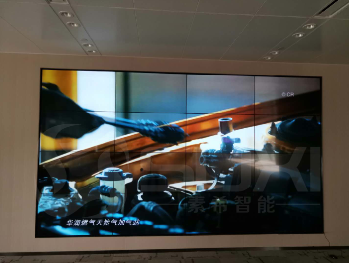 上海素希智能科技有限公司通過對客戶的需求分析,以及客戶的預算為華潤置地選定了三星55寸3.5mm超窄邊液晶拼接屏3*4拼接,采用液壓前維護支架,安裝好該項目以后,我們受到了客戶的一致好評,用戶可以通過該拼接屏宣傳華潤燃氣的品牌。